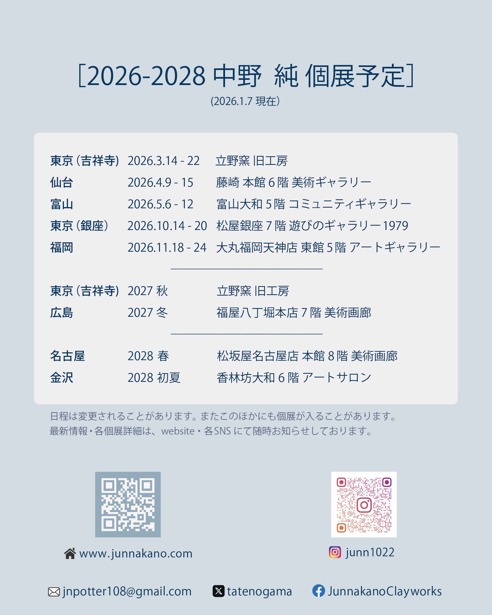 2026年3月14日(土) - 3月22日(日) 旧工房(東京・吉祥寺)にて個展をいたします。