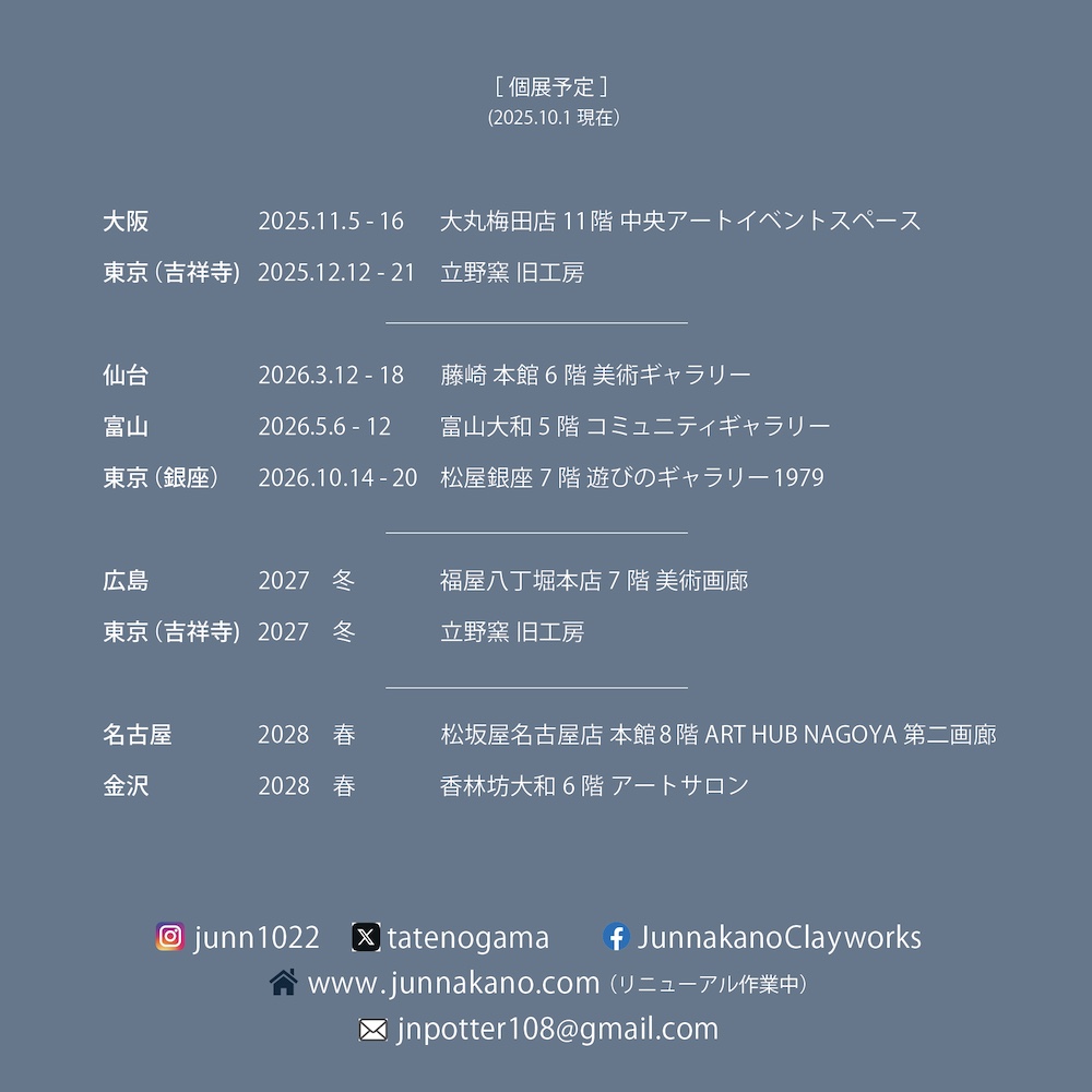 2025.11.5(水)-11.16(日)大阪にて個展をいたします